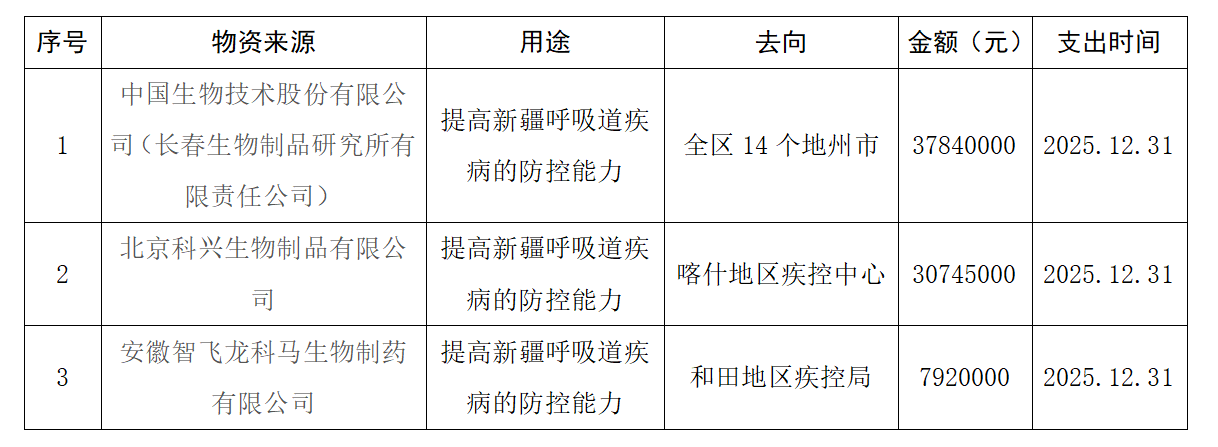 中国生物技术股份有限公司(长春生物制品研究所有限责任公司) 北京科兴生物制品有限公司 安徽智飞龙科马生物制药有限公司捐赠疫苗分配的公示
